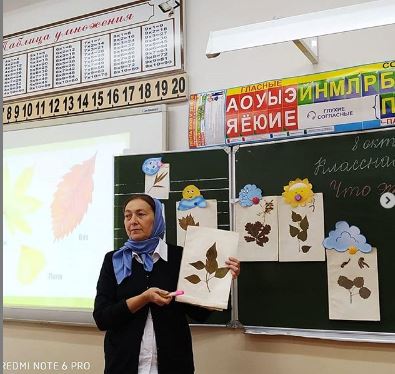 Раиса Мухарбековна провела урок окружающего мира в 1 "Б" классе на тему: «Что это за листья?»