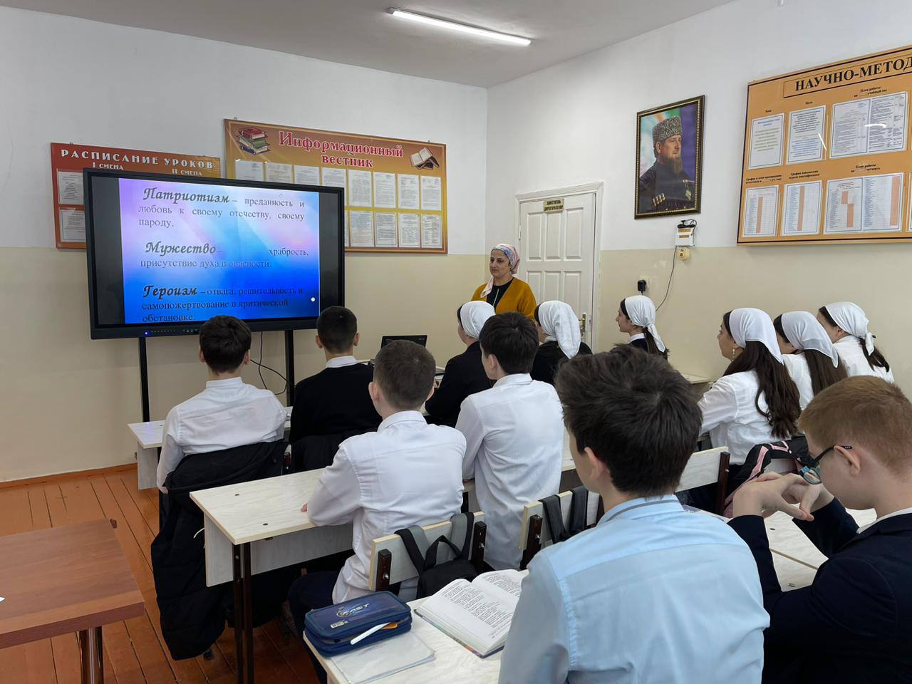 24.04.2023В МБОУ "СОШ №37" г.Грозного прошли Уроки мужества «Герои нашего времени», где напомнили учащимся о героях, которые отдали жизни за Родину во время Великой Отечественной войны и о современниках, принимающих участие в операции по демилитаризации и денацификации Украины. В ходе урока школьники рассуждали о героизме, мужестве, долге и чести, сделали вывод о том, кто является героем нашего времени сегодня, вспомнили имена героев России.