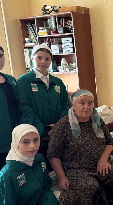 В преддверии празднования Дня Победы активисты отряда «Юные Кадыровцы» посетили ветерана ВОВ Караеву Марию Александровну!