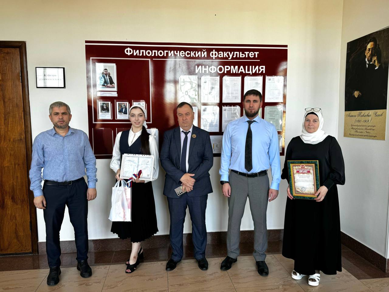 30.07.2024На базе ФГБОУ ВО «Чеченский государственный университет им. А.А. Кадырова» прошла Федеральная олимпиада школьников по родным языкам и литературам России, организованная совместно с Северо-Восточным федеральным университетом. Цель олимпиады - выявление и развитие у обучающихся творческих способностей, интереса к научно-исследовательской деятельности, пропаганда научных знаний и создание условий для поддержки одарённых детей. Олимпиада состояла из двух этапов и охватывала 62 предмета и профиля, включая русский как иностранный, английский язык, русский язык и литературу, родные языки и литературу и другие. Ученица Гимназии № 5 города Грозного Амира Элембаева стала призером олимпиады по профилю «Родные языки». Декан филологического факультета ЧГУ Аюб Абубакаров наградил её дипломом III степени, медалью и ценными подарками. Кроме того, за популяризацию чеченского языка, профессионализм и высокую подготовку школьников благодарственным письмом отметили учителя чеченского языка и литературы Гимназии № 5 города Грозного Исакову Бирлант Нардиновну. Дала тlаьхье беркате йойла! #олимпиадноедвижение #олимпиадапороднымязыкам #призовоеместо #ЧГУимениААКадырова #Грозный #школыГрозного #школьникиГрозного #одаренныедети #системаобразованияГрозного #ЗелимханАхматов #ДепобрГрозный