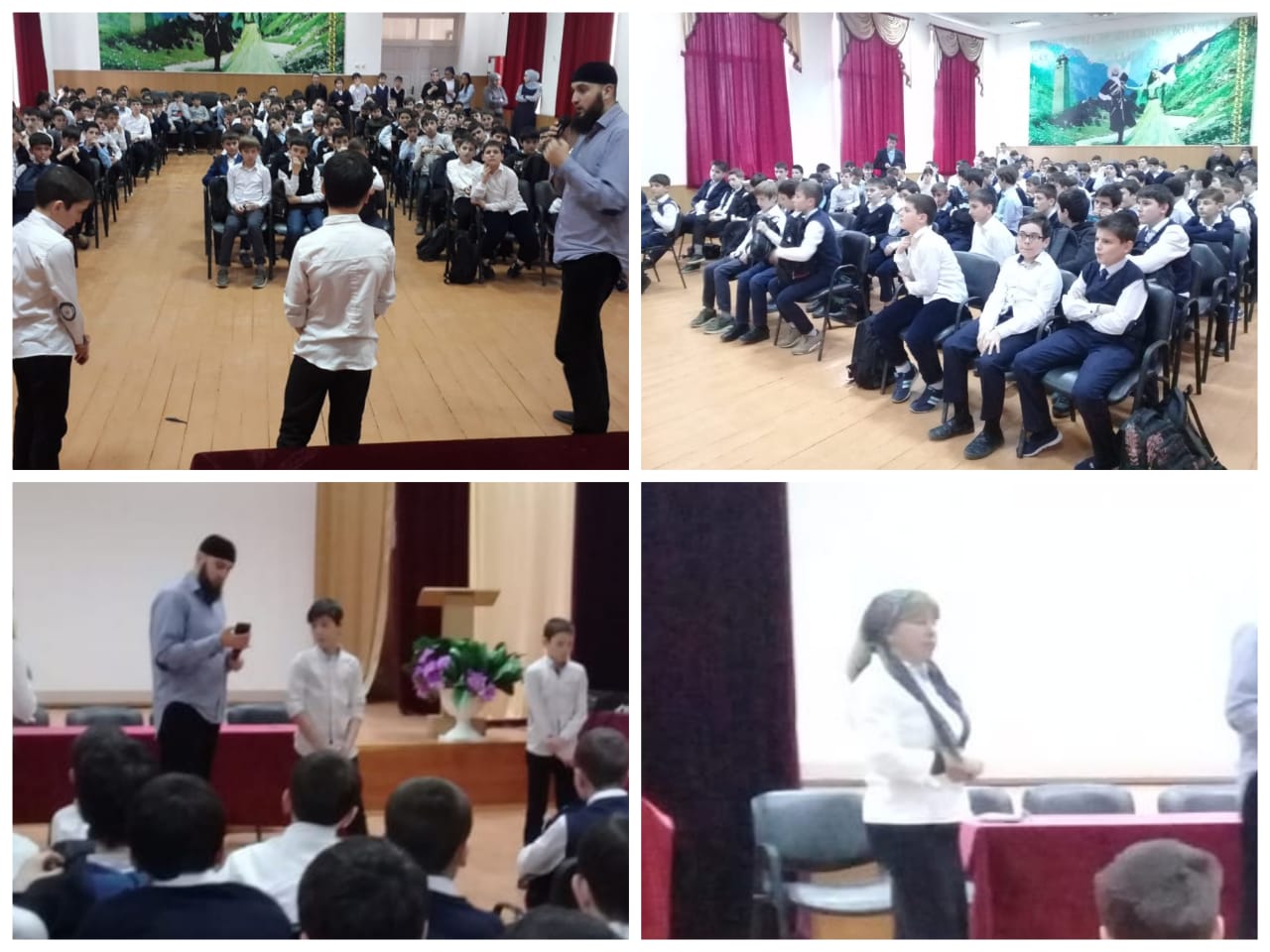 Проведена беседа в актовом зале учащимися 6-8 кл. тему: " Мусульманин мусульманину – брат, он не притесняет и не предаёт его".